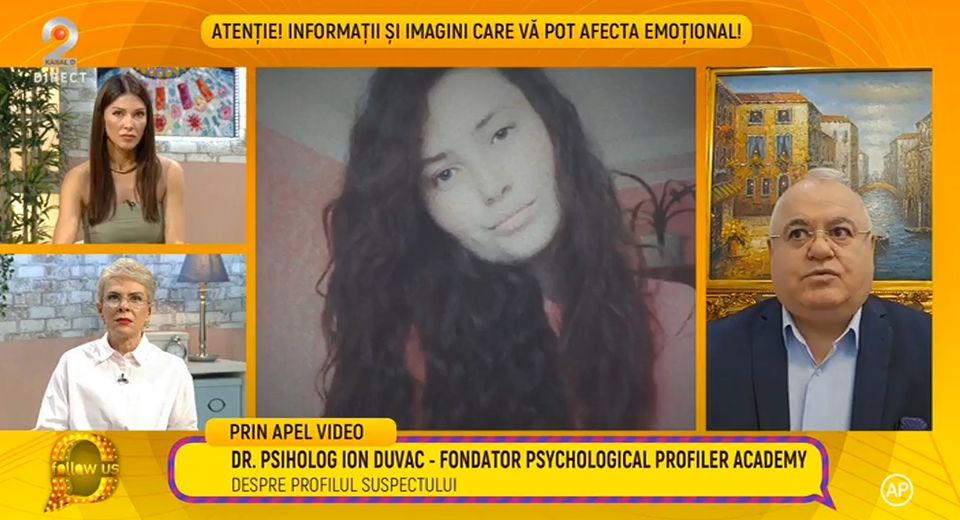 Psihologul criminalist Ion Duvac, fondator al Psychological Profiler Academy, a vorbit în cadrul emisiunii „Follow us!”, despre cirma care a îngrozit o țară întreagă. Este vorba despre crima din Orhei, în care o gravidă de doar 19 ani a fost ucisă și găsită fără suflare într-o pădure. Principalul suspect este chiar bărbatul care a luat-o la ocazie, un fost polițist în vârstă de 45 de ani.