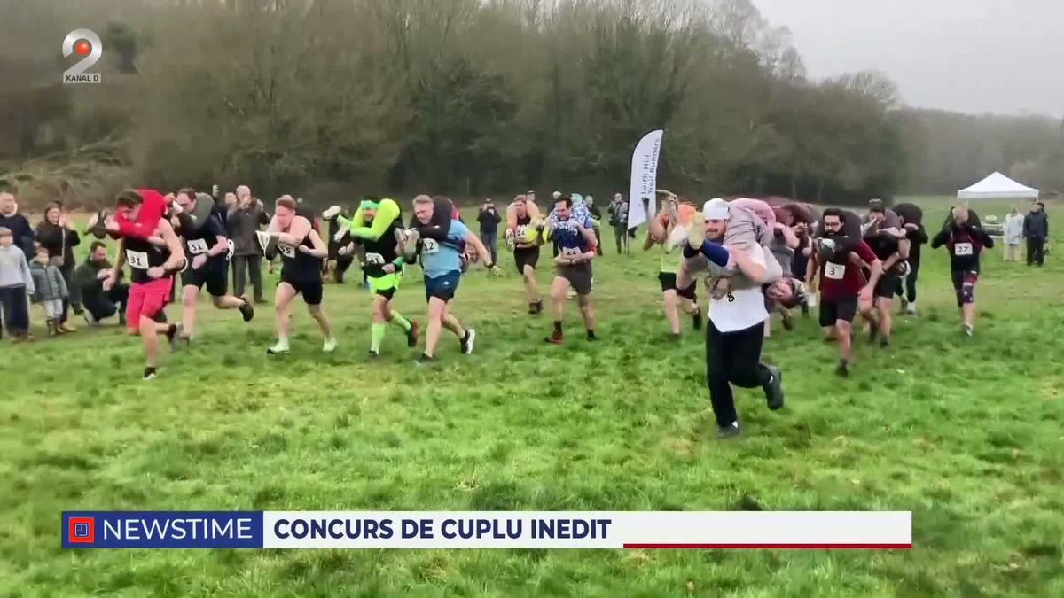 Concursul a constat într-o cursă de 380 de metri pe un deal, în care soții au alergat cu partenerele în spate, demonstrând atât forță, cât și spirit de echipă.