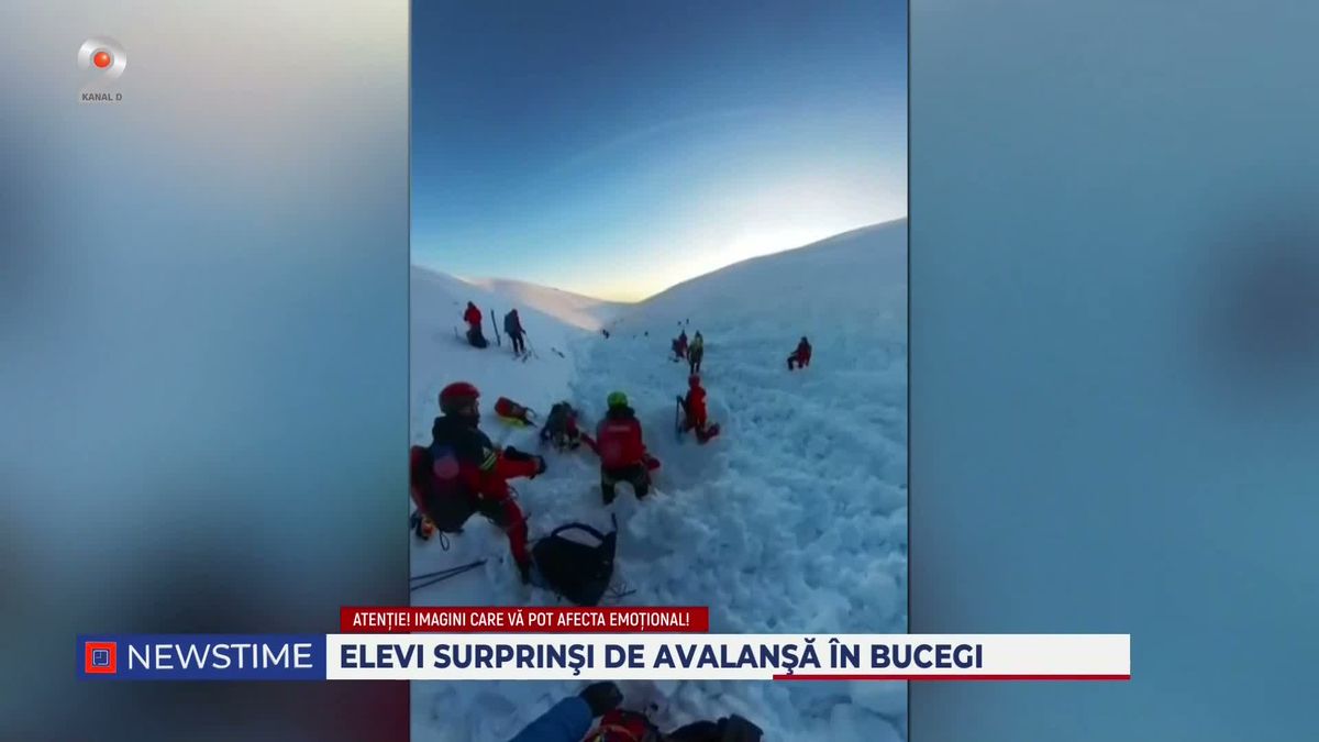 Imagini care dau fiori reci au fost filmate recent în masivul Bucegi, unde mai mulți elevi de la școala de iarnă Salvamont au fost surprinși de o avalanșă în timp ce coborau muntele pe schiuri.