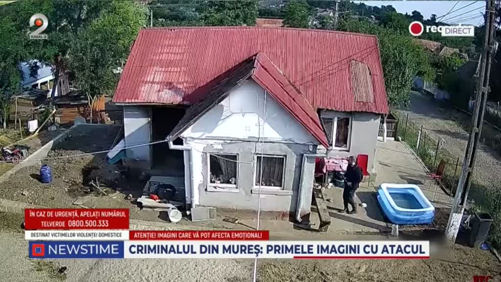În aceste imagini, surprinse de o cameră de supraveghere amplasată pe casa vecină, se vede cum Emil Gânș ajunge în curtea Andei înarmat cu un topor, iar tânăra de 23 de ani și sora ei reacționează cu teamă și disperare.