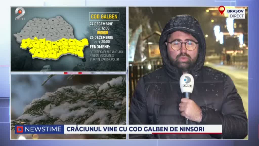 Meteorologii au emis o avertizare cod galben de ninsori, valabilă pentru jumătatea de sud a țării, unde stratul de zăpadă a ajuns la aproximativ 10 cm, iar în zonele montane, precum Poiana Brașov, stratul de omăt depășește 20-25 cm.