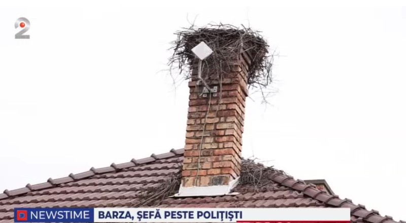 Cuibul de barză, ridicat la înălțime, nu este amplasat pe un stâlp obișnuit, ci chiar pe hornul clădirii poliției. Legea protejează aceste păsări migratoare, iar distrugerea sau mutarea cuibului fără aprobări speciale este strict interzisă și poate atrage sancțiuni chiar și pentru oamenii legii.