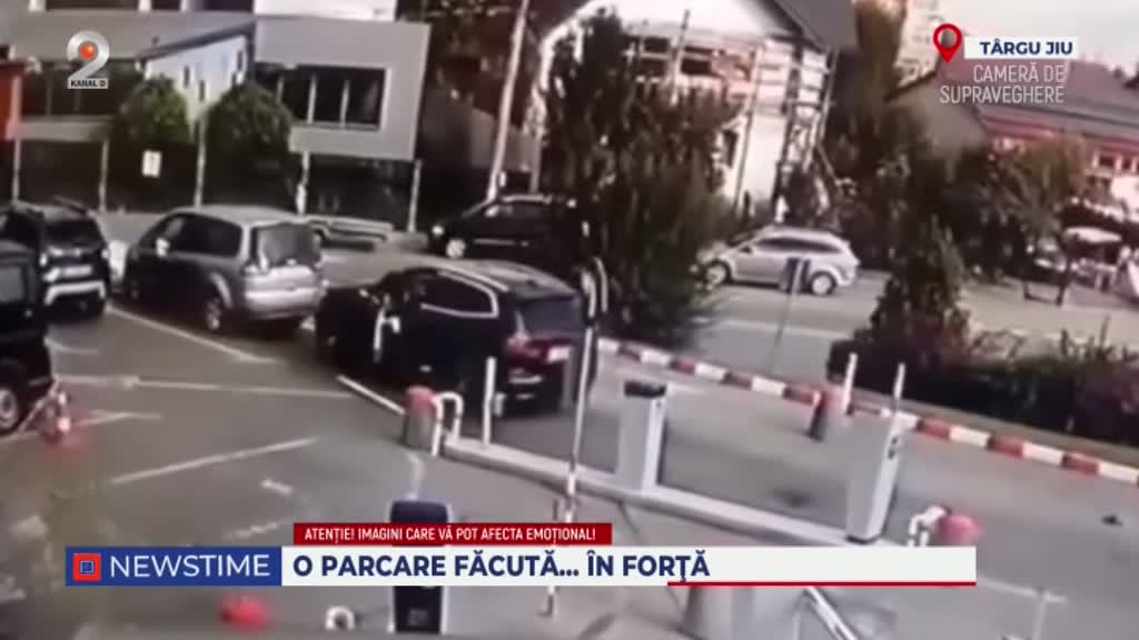 Un incident neobișnuit a fost surprins de camerele de supraveghere din parcarea unui centru comercial din Târgu Jiu. O șoferiță în vârstă de 33 de ani a pierdut controlul asupra mașinii la intrarea în parcare, rupând bariera de acces.