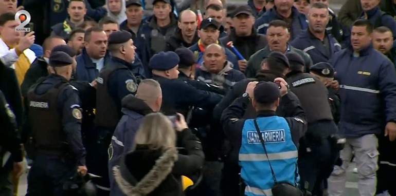 Protestul, care a început încă de la orele prânzului, a degenerat în confruntări cu jandarmii, care au folosit gaze lacrimogene pentru a dispersa mulțimea.
