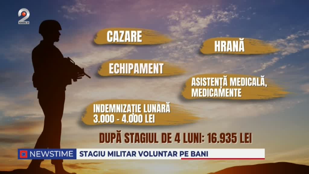 Tinerii care aleg să se înscrie în acest stagiu militar vor beneficia de cazare, hrană, echipament și asistență medicală gratuite pe durata celor patru luni de pregătire. În plus, aceștia vor primi o soldă lunară cuprinsă între 3.000 și 4.000 de lei, iar la finalul stagiului vor primi un bonus echivalent cu trei salarii medii, aproximativ 17.000 de lei.