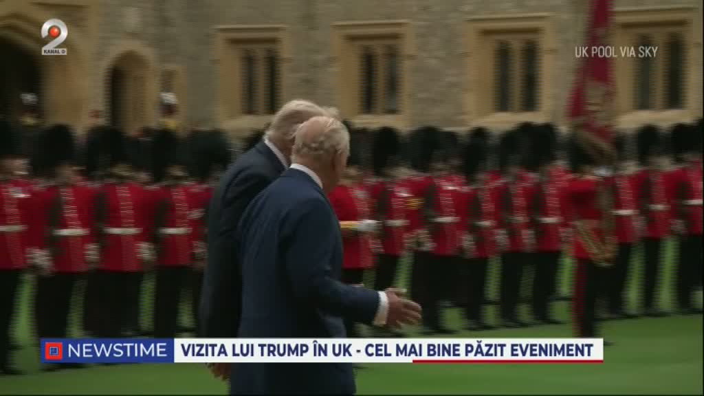 La sosirea sa, Donald Trump și prima doamnă au fost întâmpinați cu mare fast de familia regală britanică, inclusiv de regele Charles și regina Camilla, precum și de ducii de Wales. Cuplul prezidențial a participat la o plimbare cu trăsura prin parcul castelului, pe un traseu flancat de 1300 de militari britanici. În timpul procesiunii, Trump a fost surprins discutând cu regele Charles, inspectând trupele și salutând garda de onoare.